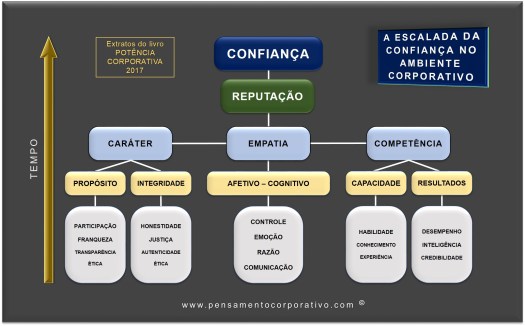 Observe os níveis da escalada da confiança no ambiente profissional. É um processo longo, função do tempo, que envolve elementos característicos das pessoas em relações sociais, familiares e corporativas.