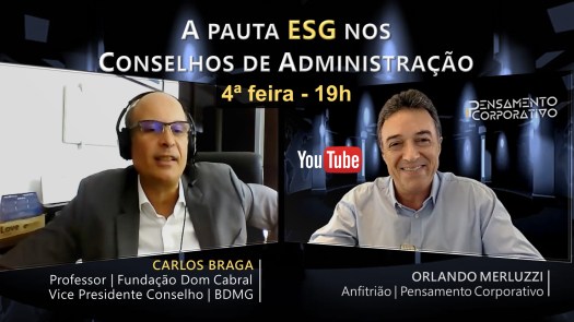 Convidamos a todos para assistirem, na próxima 4ª feira, às 19h, no Canal PensamentoCorporativo, a uma preciosa aula com Carlos Braga sobre a pauta #ESG nos Conselhos de Administração, o papel dos conselheiros e o impacto financeiro para as empresas que adotam as práticas ESG. Imperdível! Carlos Braga é Professor na Fundação Dom Cabral e vice-presidente do Conselho do BDMG (Banco de Desenvolvimento de Minas Gerais).