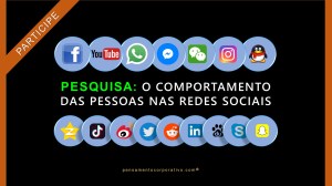 O Portal do Pensamento Corporativo está realizando uma pesquisa sobre A UTILIZAÇÃO DAS REDES SOCIAIS E O COMPORTAMENTO DAS PESSOAS. Convidamos você a participar, acessando o link abaixo ou clicando na imagem. O prazo para as respostas encerra-se no dia 15/06/2019 e os resultados serão divulgados, na íntegra, aqui no portal. Participe! Você também será beneficiado com esse estudo e suas respostas são confidenciais.